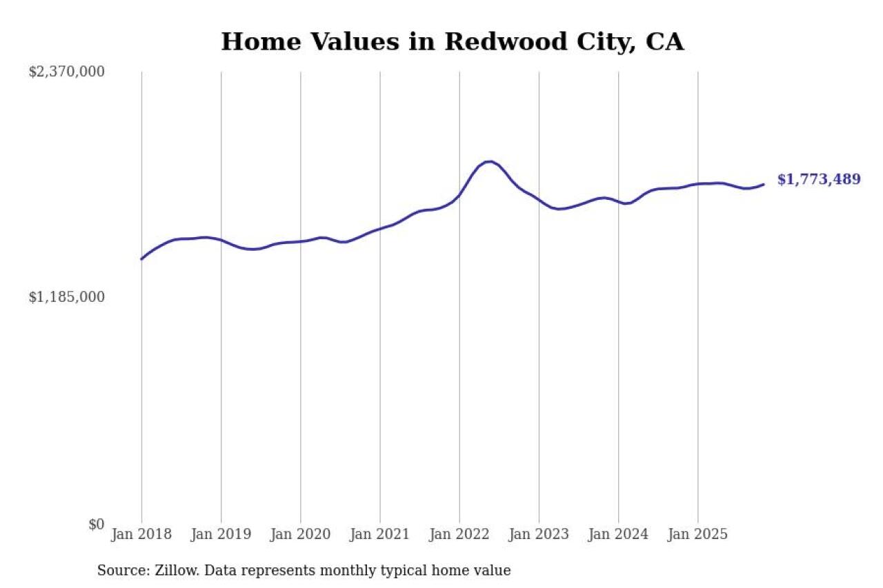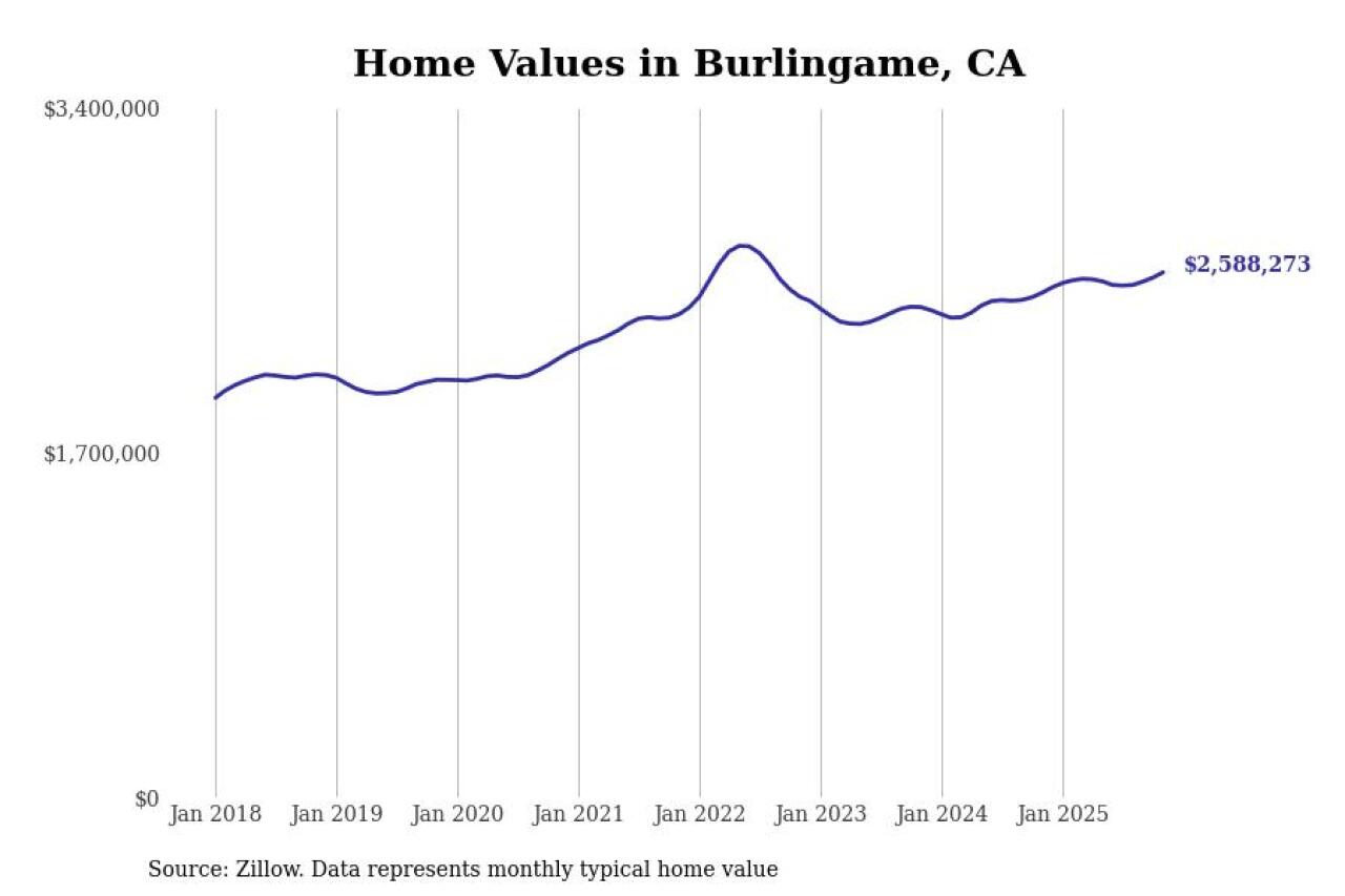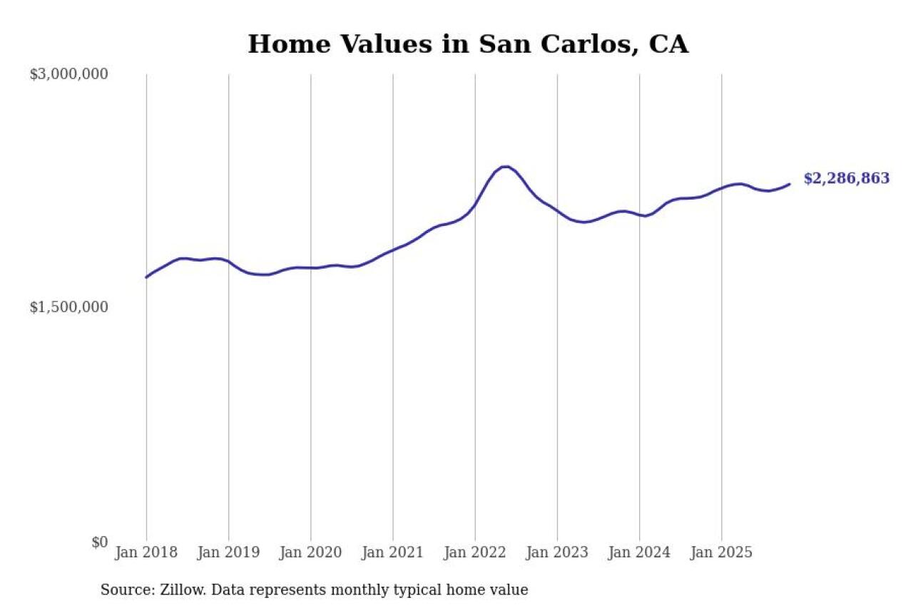 Stacker compiled a list of cities with the most expensive homes in the San Francisco metro area using data from Zillow. Charts show the monthly typical home value since January 2018. Data was available for 95 cities and towns.