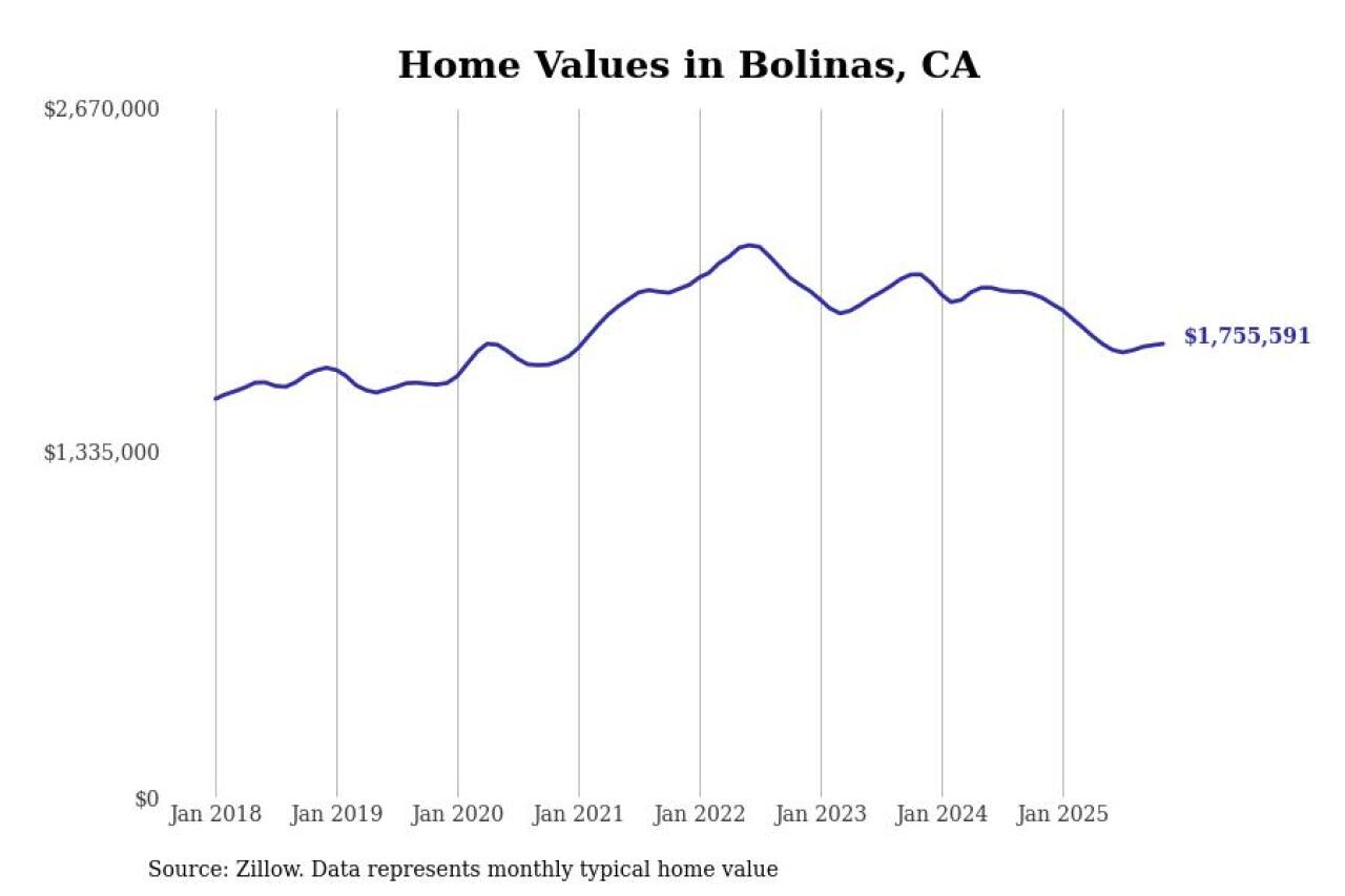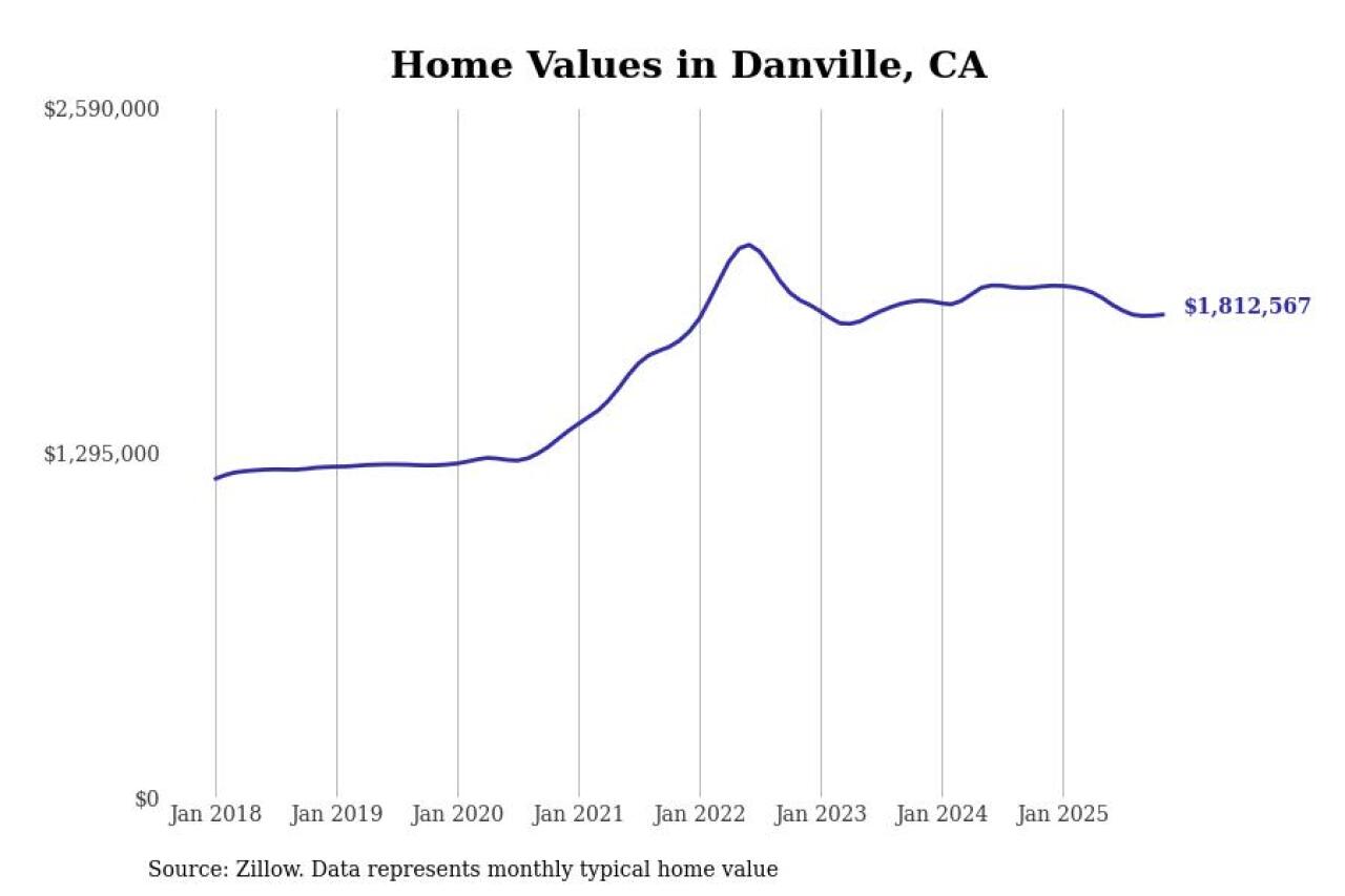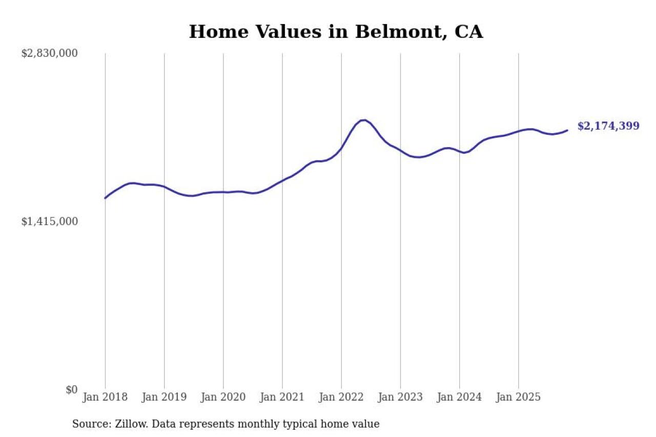 Stacker compiled a list of cities with the most expensive homes in the San Francisco metro area using data from Zillow. Charts show the monthly typical home value since January 2018. Data was available for 95 cities and towns.